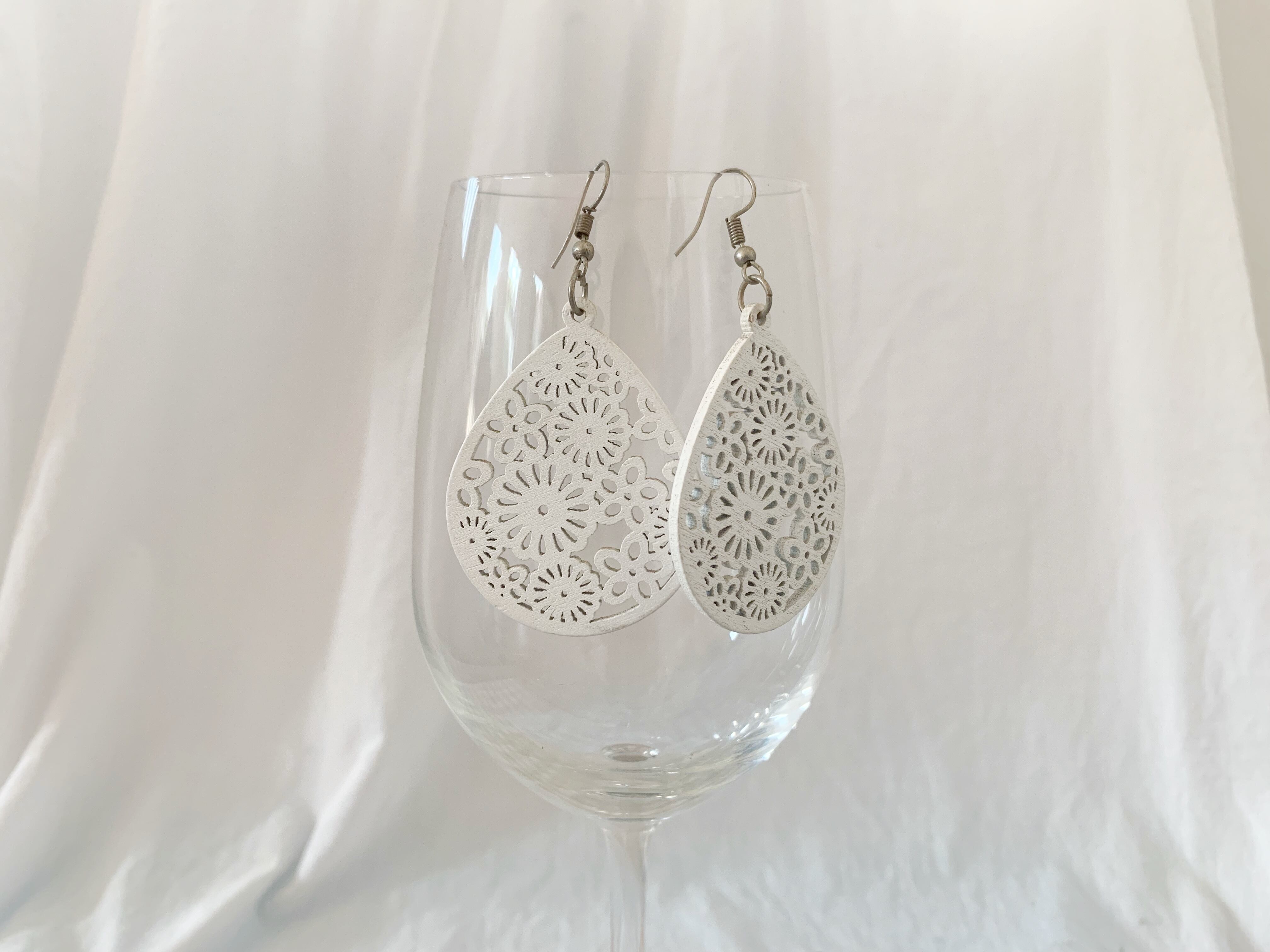 木製・しずく・花・ホワイト